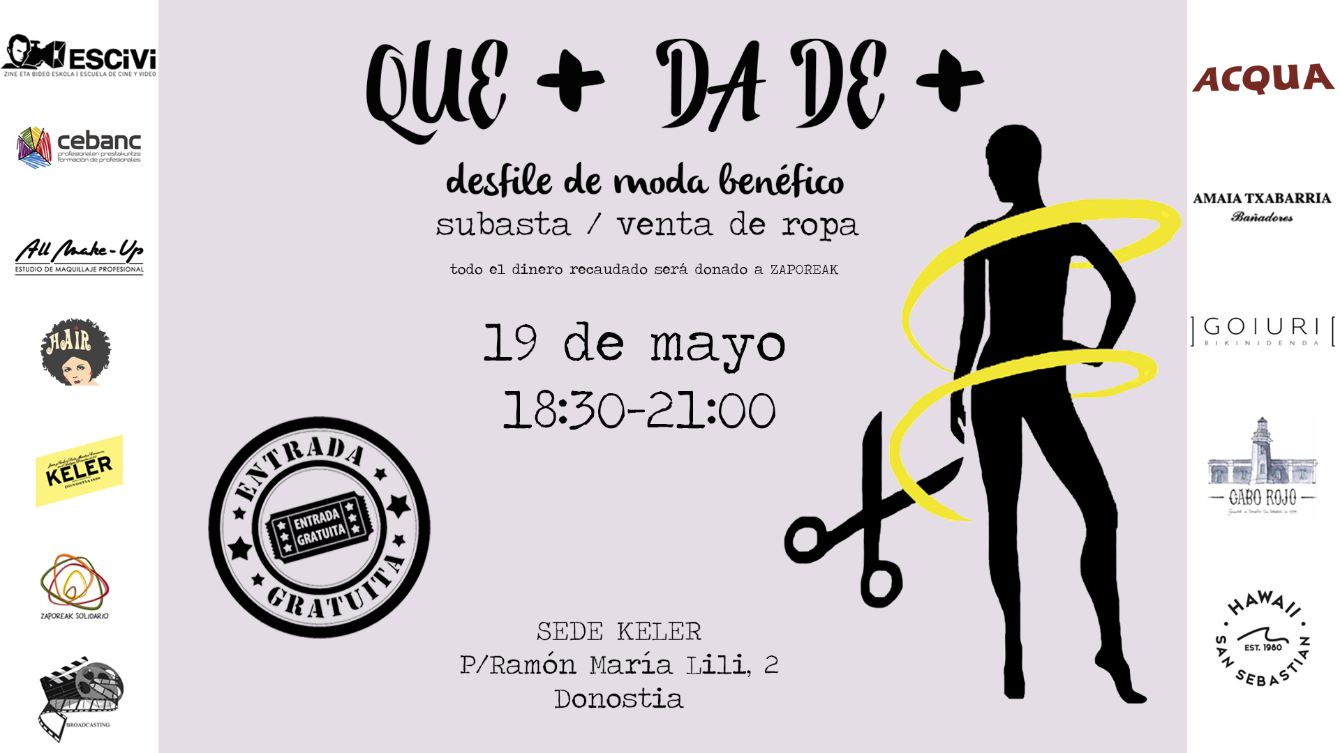 Bajo el lema “Qué + da de +”, un grupo de estudiantes de la Escuela de Cine y Video, ESCIVI, de Andoain han creado un evento solidario para ayudar al proyecto ZAPOREAK.