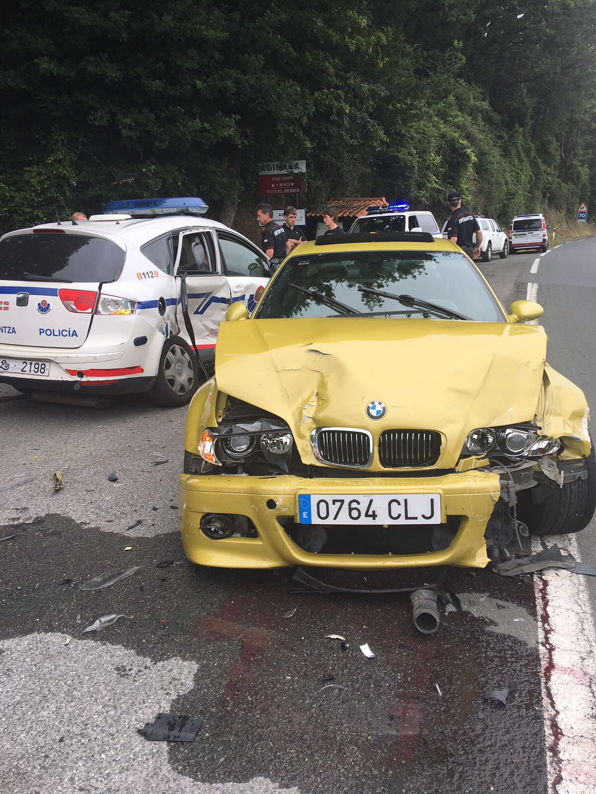Resultaron heridos dos ertzainas y el conductor del turismo. Los tres fueron trasladados por los servicios sanitarios a la Policlínica Gipuzkoa.