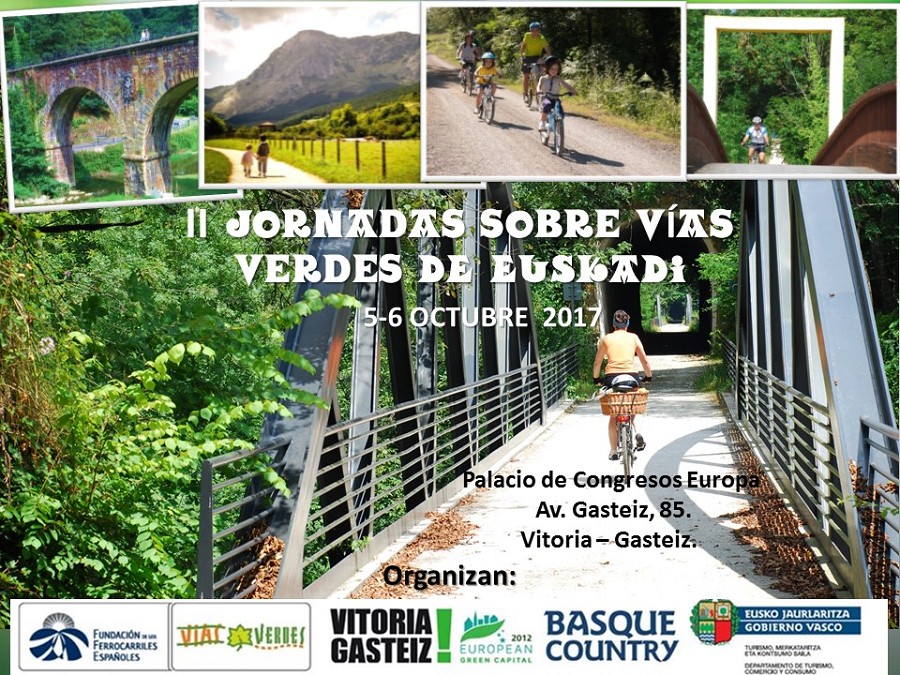 Durante los días 5 y 6 de octubre se celebrarán las II Jornadas sobre Vías Verdes de Euskadi. El Ayuntamiento de Vitoria-Gasteiz, Basquetour y la Fundación de los Ferrocarriles Españoles (FFE) se han puesto de acuerdo para organizar estas Jornadas coincidiendo con el Año Internacional del Turismo Sostenible para el Desarrollo. El escenario de las jornadas será la ciudad de Vitoria-Gasteiz, claro ejemplo de ciudad sostenible.