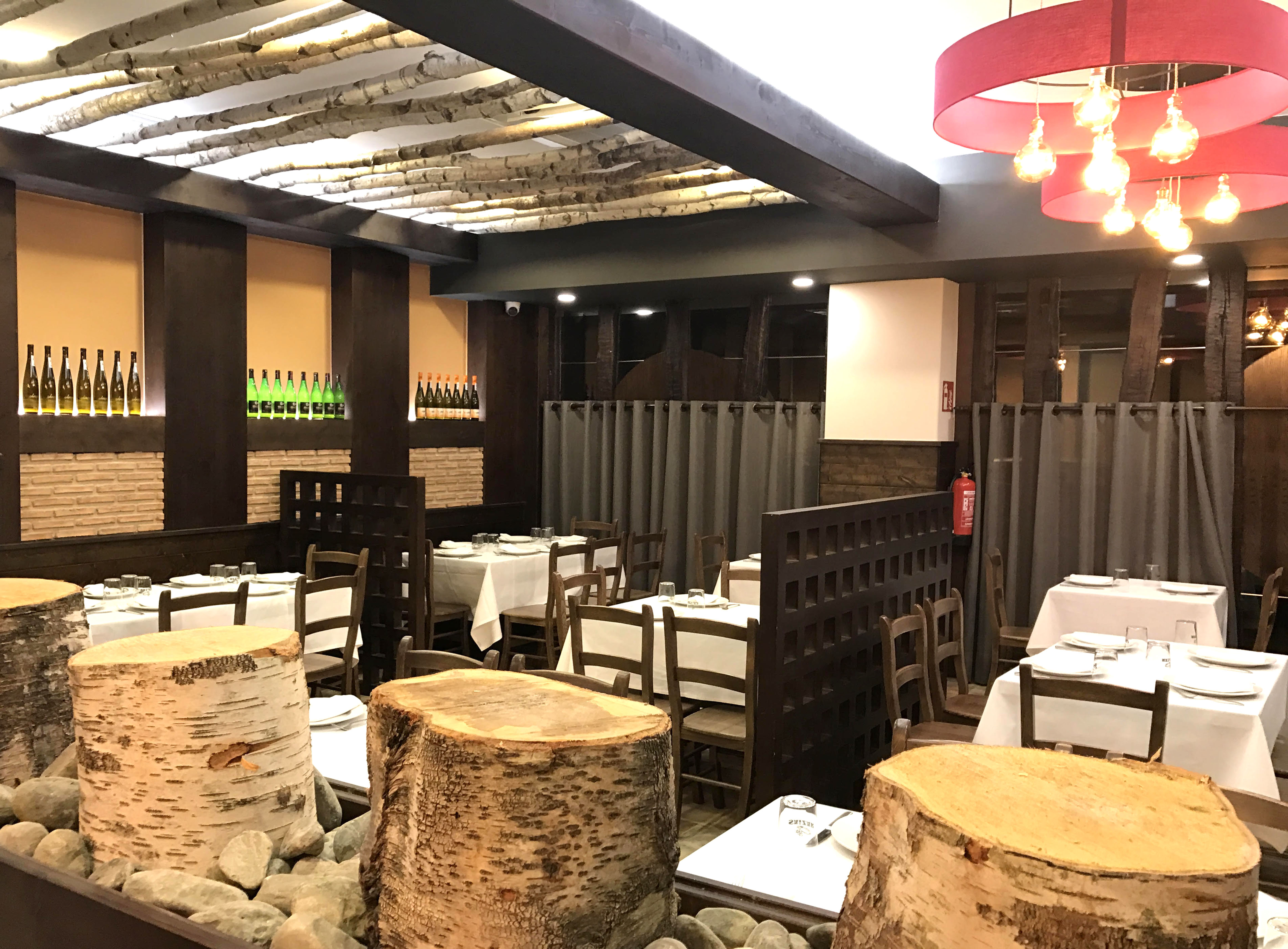 Cuenta con 4 ambientes diferentes, uno para cada ocasión: un comedor para disfrutar de la sidrería tradicional, un comedor dinámico integrado en el espacio principal, una barra de pintxos y una terraza climatizada para 80 comensales.
