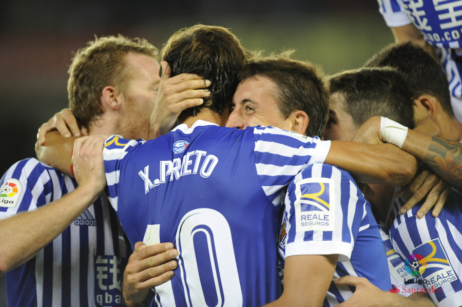 Xabi Prieto, por su parte, iba camino de agrandar su partido 500. A la media hora, estuvo a punto de marcar el segundo gol realista, pero Andrés Fernández desvió el balón a córner cuando todo Anoeta ya cantaba gol. En el mismo saque de esquina, el capitán recibió el esférico tras previo toque de Raúl Navas, y esta vez, sí que sí, Prieto anotaba el segundo tanto para la entidad vasca.