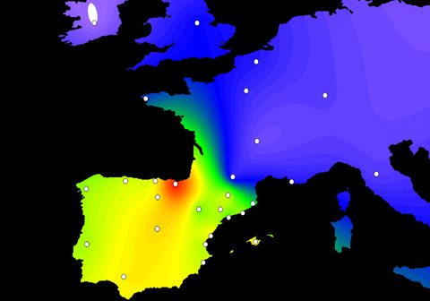 Mediante el análisis de muestras de ADN de casi 3.000 hombres de la Península Ibérica y Francia, el equipo científico ha revelado la presencia de esta variante en el 40% de los varones ibéricos, pero por debajo del 10% más allá de los Pirineos. La cifra asciende considerablemente en el País Vasco, donde el 70% de los varones muestran la variante R1b-DF27 del cromosoma Y.