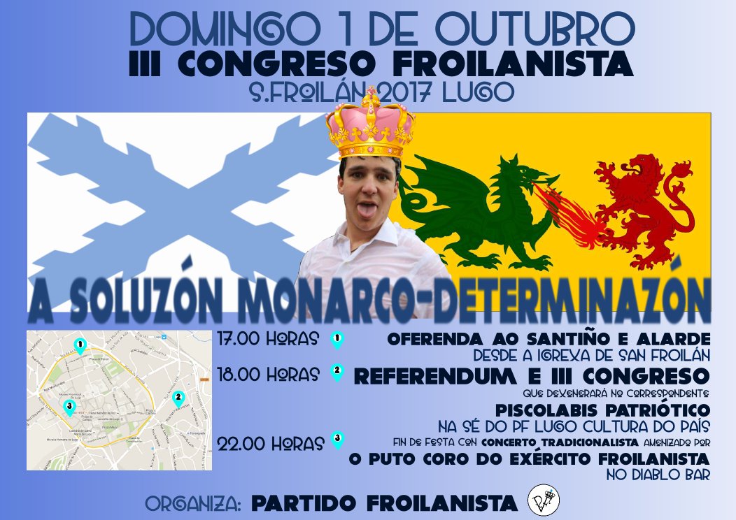 Galicia se suma al 1-O con un referéndum propio, bueno no toda Galicia. Quien lo hace es un grupo de autodenominados “patriotas gallegos” que conforman el PF, Partido Froilanista y que abogan porque el díscolo sobrino de Felipe IV reine en Galicia como Froilán III.