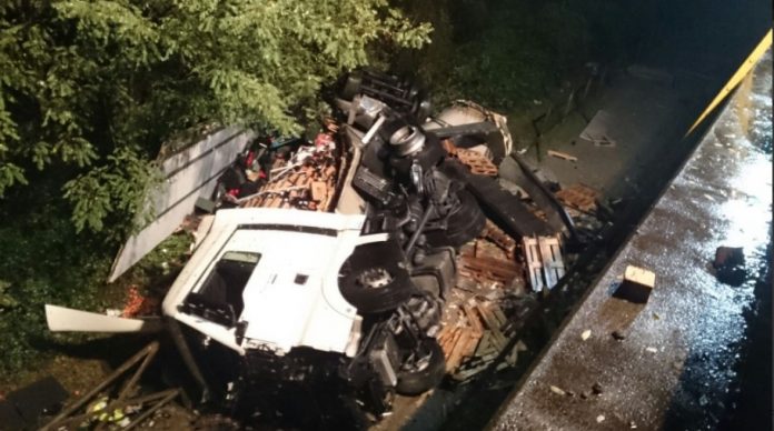 Tras el accidente, el camión, que ha perdido parte de su carga, ha caído por la cuneta sobre un carril-bici cercano y ha quedado fuera de la calzada, a pocos metros del río Bidasoa, que discurre paralelo a esta calzada que une Guipúzcoa y Navarra.