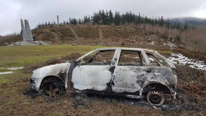 El vehículo, un Seat Ibiza blanco, fue hallado ayer lunes por la mañana en Besaide, entre Udalaitz y Anboto, aparcado cerca del monumento más nuevo de los dos que se encuentran en el lugar. Parece ser que alguien prendió fuego al vehículo y lo abandonó, un hecho que ha contrariado al grupo de montañeros Besaide Mendizale Elkartea por el daño que ha causado al monte.