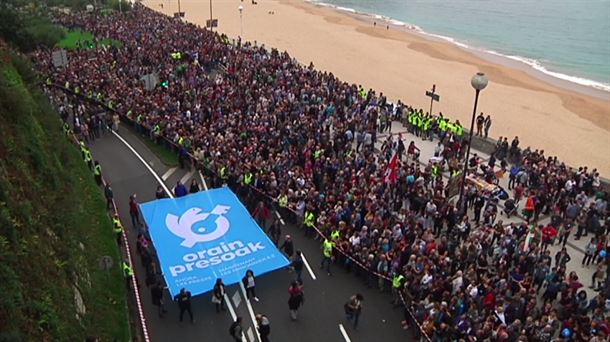 La manifestación por los derechos de los presos que recorrió Donostia entre el Antiguo y el Boulevard el pasado sábado reunió a 40.000 personas según los convocantes.