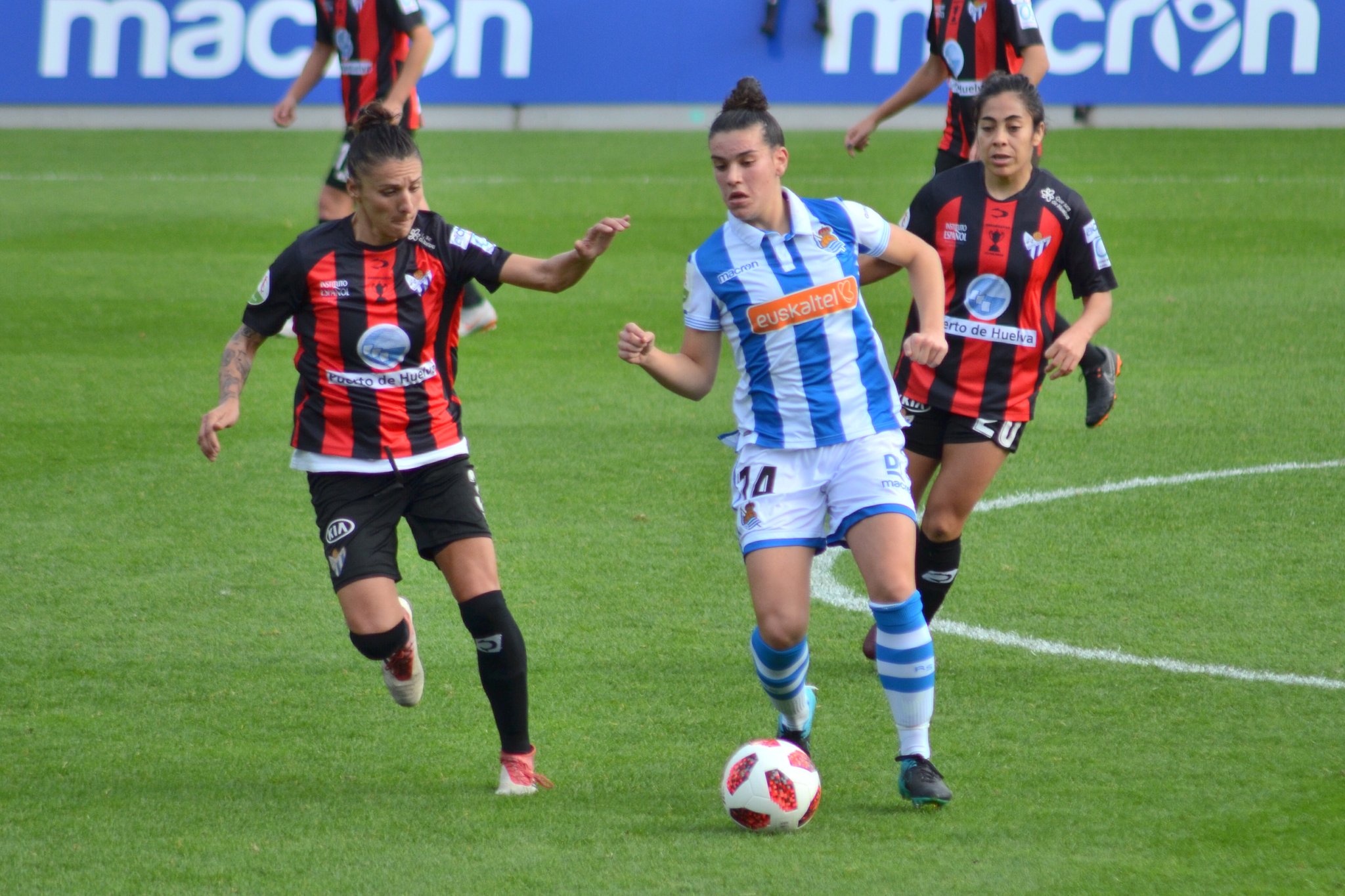 Carla Bautista pudo en muchos apuros al conjunto onubense con varias internadas por la banda y, sobre todo, con buenos lanzamientos de falta, pero fue Nahikari García quién dispuso de la mejor ocasión antes del descanso al rematar dentro del área un buen envío de Manuela Lareo, aunque el balón no encontró portería por muy poco.