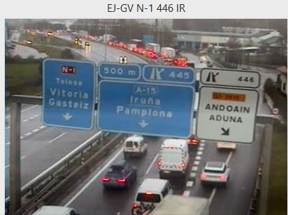 Según la Dirección de Tráfico, las retenciones ya superan los 6 kilómetros y hay dos carriles cortados sentido Vitoria-Gasteiz.