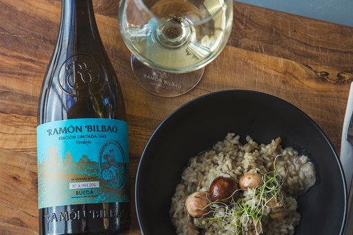 - Quedada con compis de curro. Ramón Bilbao Edición Limitada Lías Verdejo y risotto cremoso con setas.
