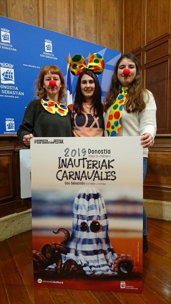 El concejal de Fiestas de Donostia, Alfonso Gurpegui, presentó ayer el cartel de los Carnavales de este año, realizado por la tolosarra Lara Aranzábal Segura.