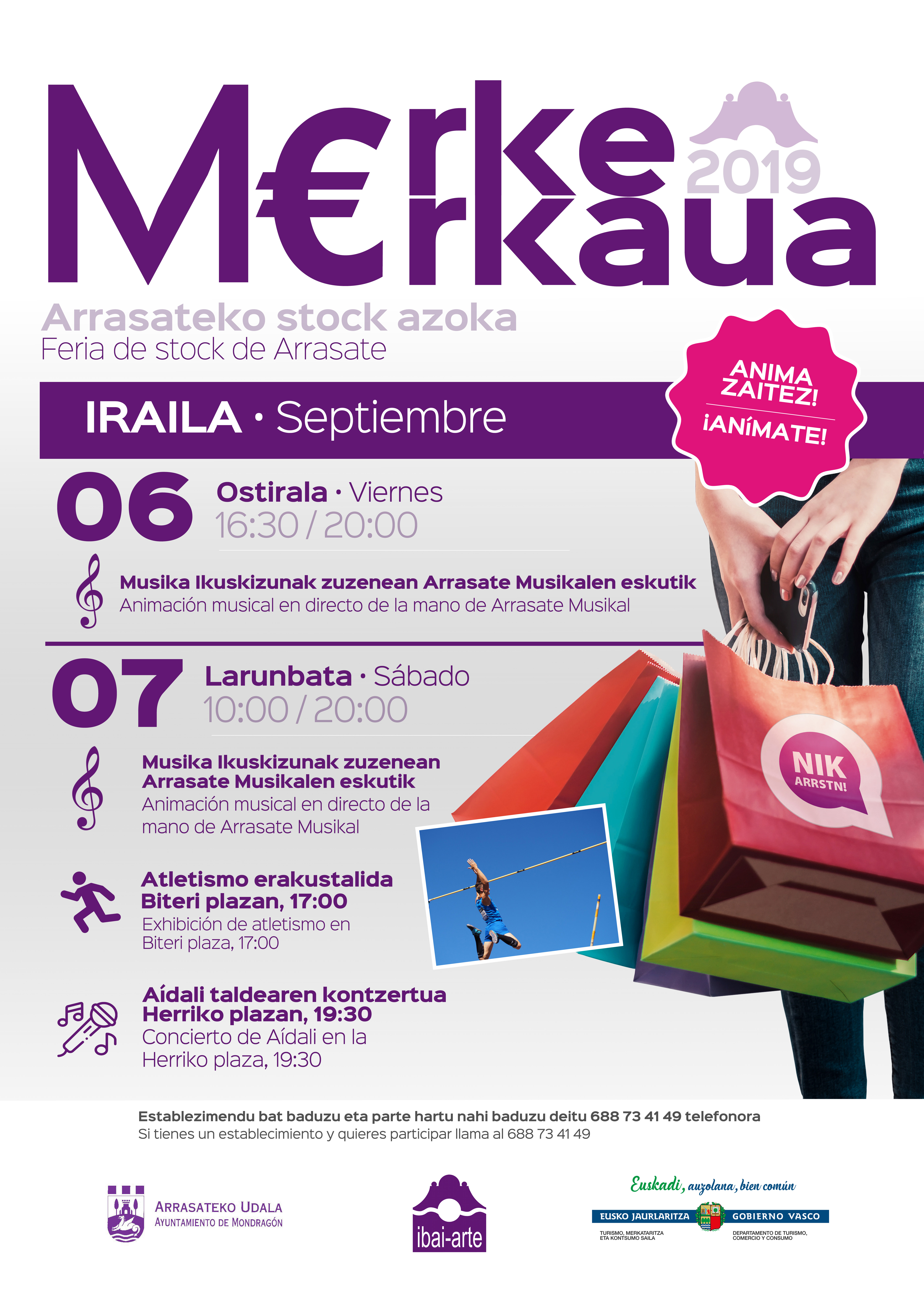 El 6 de septiembre: Animación musical en directo de la mano de Arrasate Musical. 7 de septiembre: