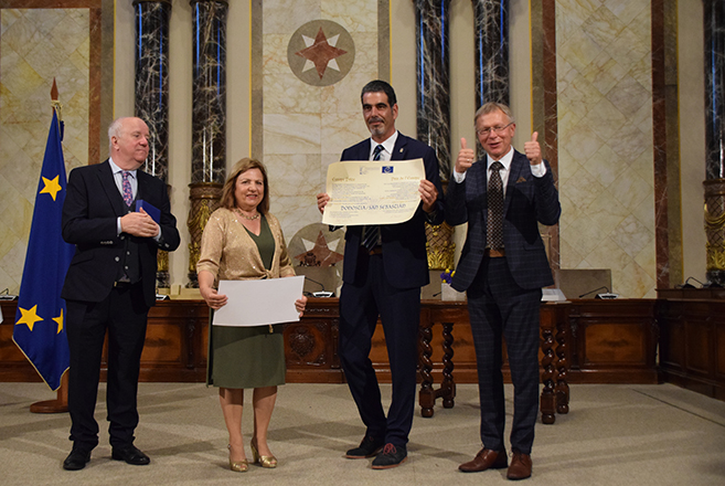Los encargados de hacer entrega del galardón han sido el Vicepresidente del Subcomité del Premio de Europa, D. Kestutis Masiulis y Joseph O’Reilly, Vicepresidente de la Asamblea Parlamentaria y miembro del Subcomité del Premio de Europa.