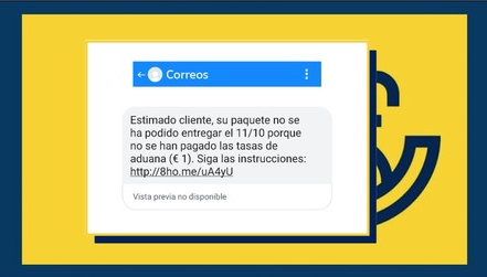 Diversos clientes de Correos están recibiendo mensajes de ‘phishing’ vía SMS en los que se les advierte de que su pedido «no ha podido ser entregado porque no se han abonado las tasas de aduanas», y se les solicita seguir las instrucciones de un enlace adjunto.
