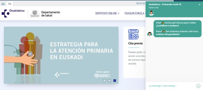 El Servicio Vasco de Salud ha puesto en marcha un chatbot en su página web para informar a la ciudadanía sobre el coronavirus.