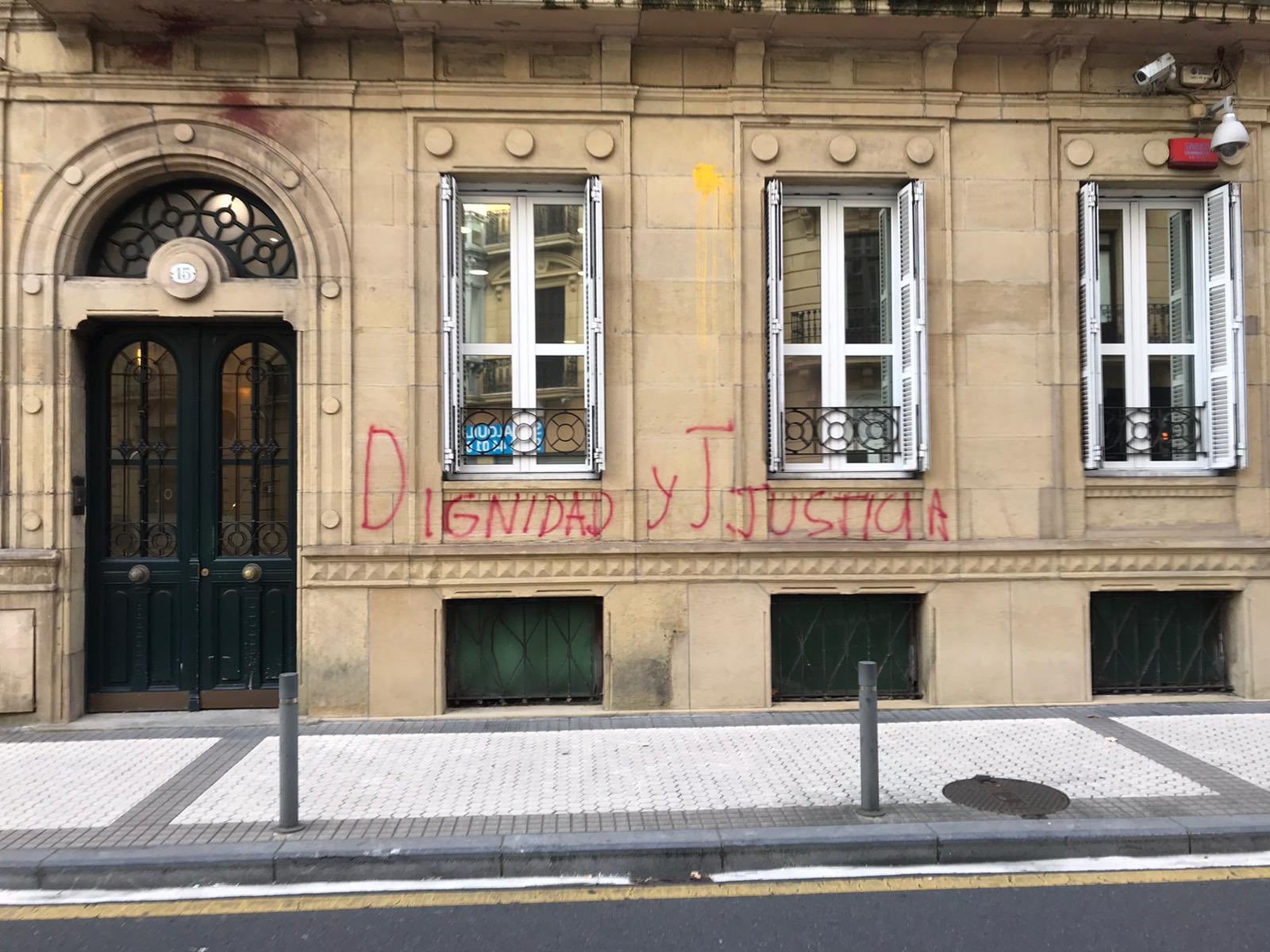 «Nuestra sede del @PSEGIPUZKOA ha amanecido, una vez más, con rastros de intolerancia. El gusto por las “fachadas” es muy propio de los herederos del régimen anterior. Los extremos tienen mucho más en común de lo que parece», ha explicado Andueza.