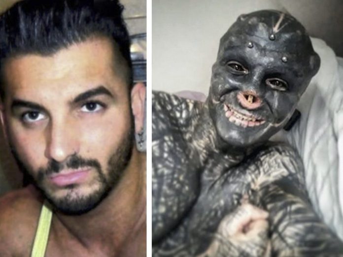 El joven francés de 32 años ha llegado a amputarse la nariz, extirpar sus orejas, seccionar la lengua, tatuar los globos oculares y poner implantes reptilianos en el rostro.