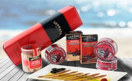 «Imprescindible probar la excepcional ventresca de bonito del norte, así como las anchoas ‘serie oro’, grandes, tersas y perfectamente ‘afeitadas’. Del Cantábrico y artesanas. Y para los amantes de las conservas tienen otras delicias como boquerones, mejillones o las sardinillas ‘txikis’, todo ello de primera calidad y especialmente seleccionado. Ayudado por la excepcional calidad del pescado, Conservas Serrats implanta las nuevas técnicas de conservación provenientes de Francia, que le permiten introducir rápidamente sus elaborados en los mercados europeos. Para Navidad preparan unas originales cajas surtidas que harán «morir de éxito» a quienes las adquieran».