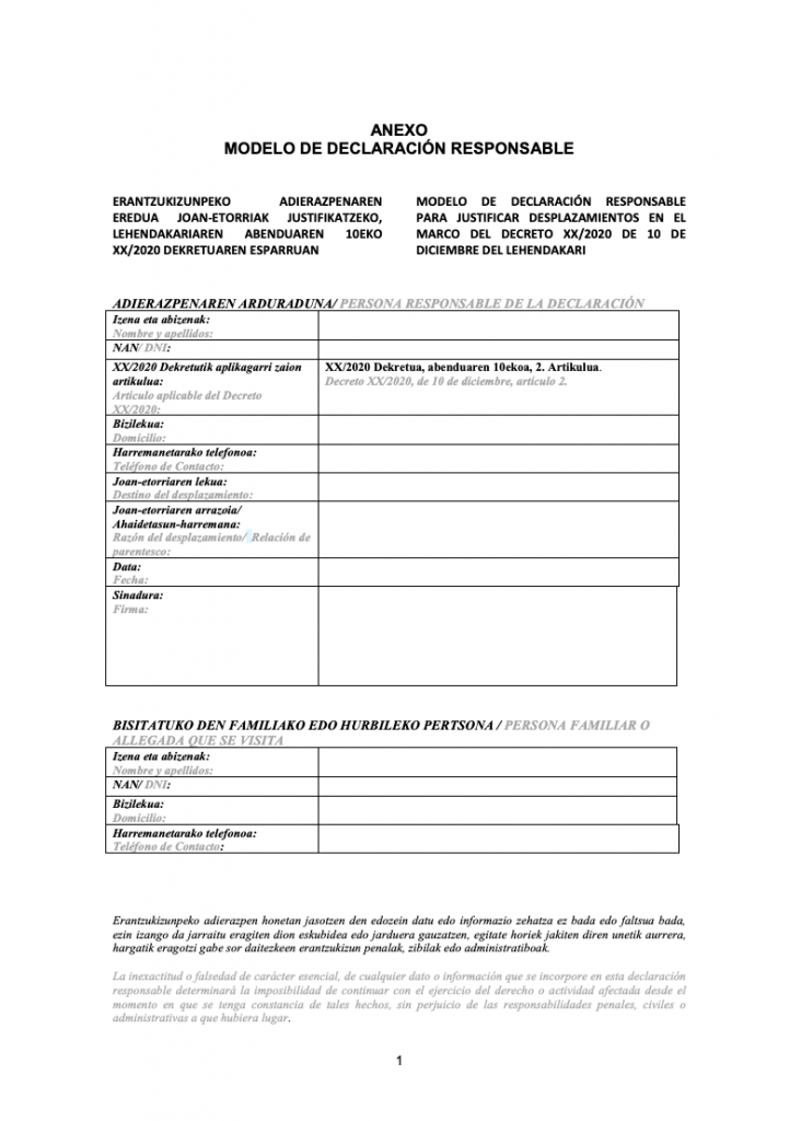 Para justificar estos desplazamientos se ha creado este modelo de declaración responsable:
