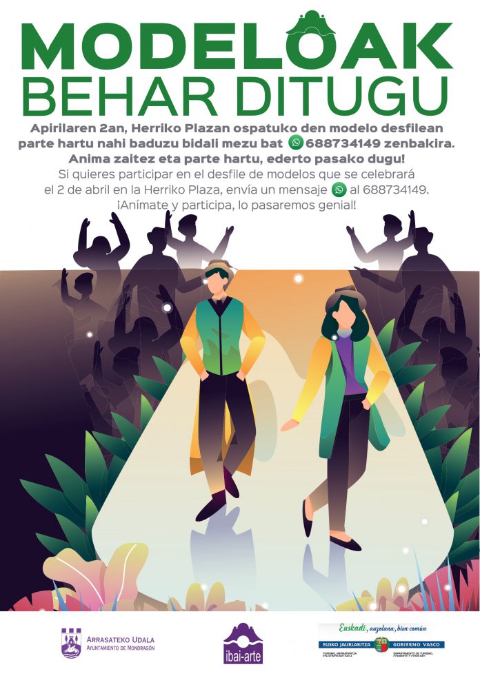 Si quieres participar en el desfile de modelos que celebraremos el 2 de abril en la Herriko Plaza, envía un mensaje al 688734149.