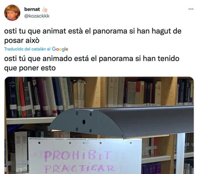 El usuario @kozackkk ha sorprendido a miles de personas en Twitter al compartir el cartel que se ha encontrado en la biblioteca de la Ciutadella de la Universidad Pompeu Fabra de Barcelona. Además ha escrito junto a la foto: “Hostia qué animado está el panorama si han tenido que poner esto”.