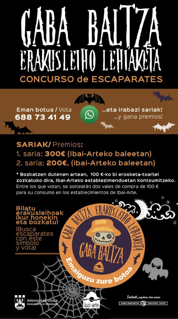 Por ello, Ibai-Arte ha organizado el concurso de escaparates de Gaba Baltza desde el 26 de octubre al 1 de noviembre. Así que echa un vistazo a los escaparates de los establecimientos Perfumería Altuna, Optica-Optometría Arrasate, Bea Lentzeria, Beinke, Elkoro Bisuteria, Intersport Loramendi (San Andres), Itxaso Mertzeria, Kapikua, Milar Elkoro, Resusta Karrikiri, Sustrai y Toñi & Sandra y ¡vota tu preferido! Entre los votantes sorteamos dos vales de compra de 100€ para consumir en los establecimientos de Ibai-Arte.