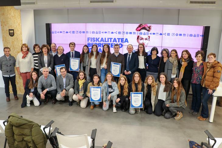 La entrega de premios se ha celebrado esta tarde en el espacio Etorkizuna Eraikiz Gunea de la Diputación Foral de Gipuzkoa. Han estado presentes cerca de 30 personas que han participado en el concurso o bien en la organización del mismo. La Hacienda Foral se ha mostrado muy agradecida y ha destacado la aportación de los agentes que han acompañado a las diferentes ediciones del certamen, como universidades, BIC Gipuzkoa o los centros tecnológicos. “Si queremos ser una sociedad avanzada, debemos seguir avanzando en la lucha contra el fraude fiscal y, como siempre hemos dicho, la forma más eficaz de avanzar contra el fraude fiscal es invertir en concienciación social”, ha dicho el diputado Perona.