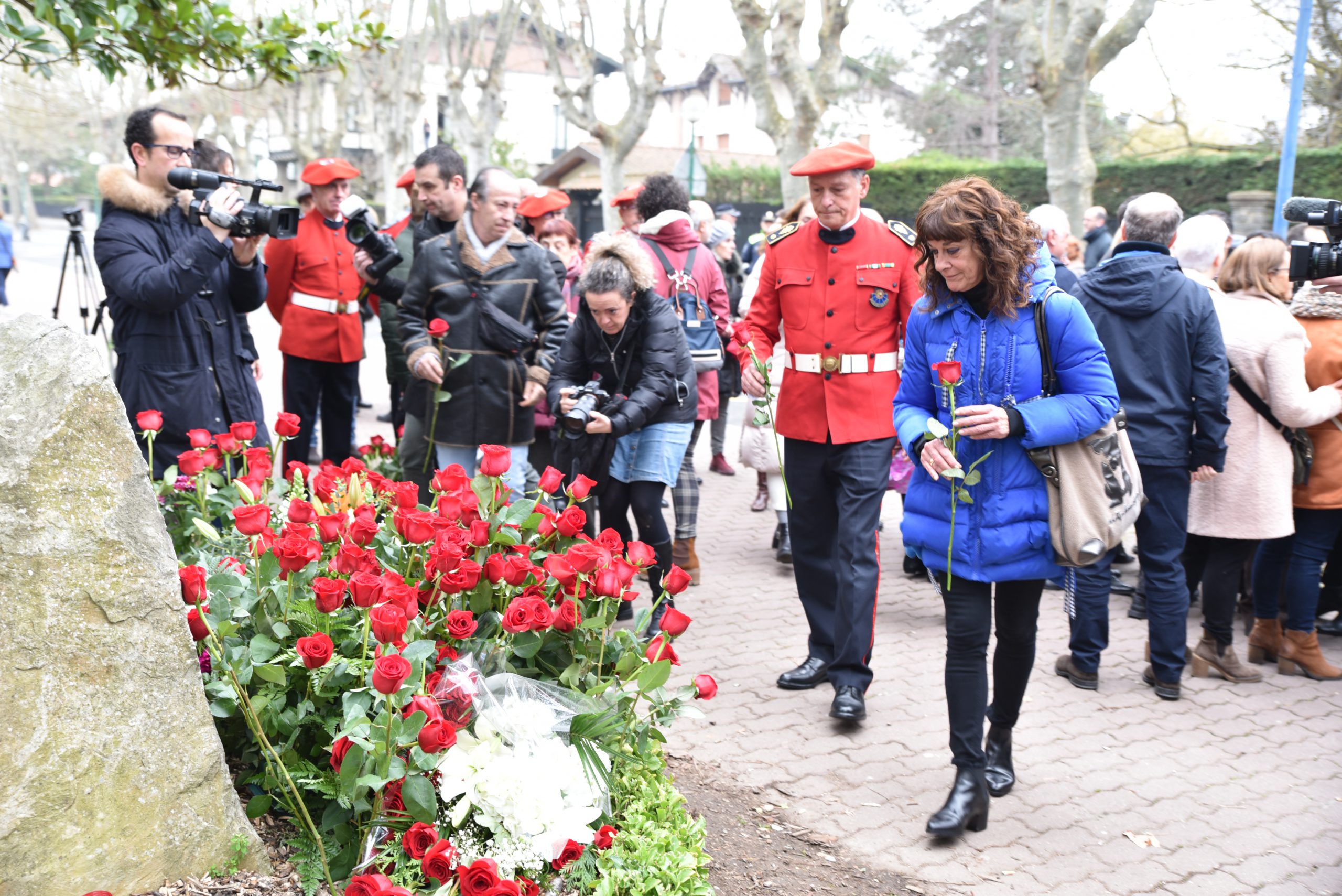 La ofrenda floral se ha desarrolló a las 12:00 horas en los Jardines de la Libertad, junto al monolito en su memoria, en la confluencia de las calles Nieves Cano con Aguirre Miramón.