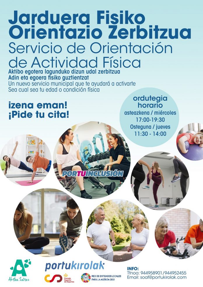 Portugaleteko kirol zerbitzuak Mugi Zaitez programaren barruan, jarduera fisikoko orientazio zerbitzua martxan du eta Pando kiroldegian kokatuta dago. Arreta astean bi egunetan ematen da, asteazken eta ostegunetan, eta 15 egunetik behin Buena Vista osasun zentroan ere arreta jasotzeko aukera dago.