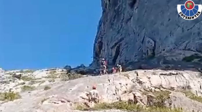 Sobre las nueve y media de la mañana Sos Deiak 112 fue alertado por un percance sufrido por dos montañeros mientras se encontraban escalando una pared vertical en el monte.