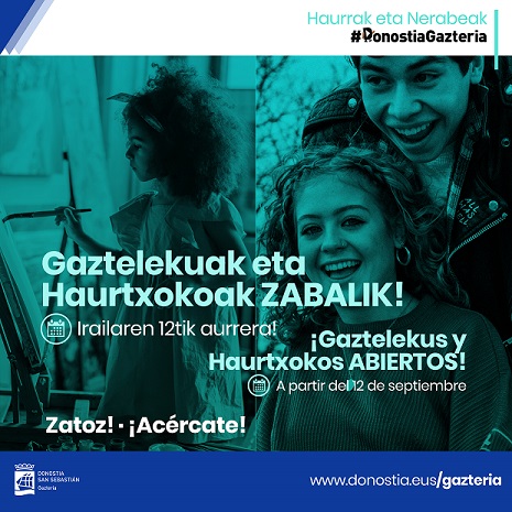 Donostiako Udaleko Haurtxoko eta Gaztelekuak, udako oporrak eta gero, datorren irailaren 12an, asteartea, irekiko dira berriro.