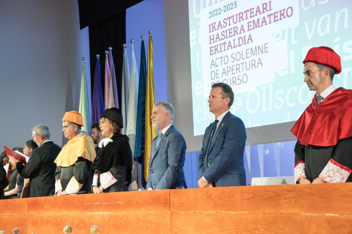 Gaur, Gasteizko Letren Fakultatean, UPV/EHUren 2023-2024 ikasturtearen irekiera ekitaldi nagusia egin da. Iñigo Urkullu lehendakaria bertan zela, euskal erakundeen eta sare sozioekonomikoaren ordezkaritza zabala bildu da.