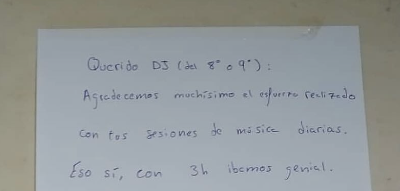 Por lo visto, el vecino de @evaconhiielo y @x.eevaa, usuarias de Instagram, escucha la música durante muchas horas a un volumen que permite que lo escuche todo el vecindario. Por ello, le han dejado esta nota junto a un obsequio: unos auriculares.