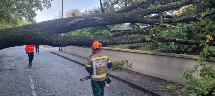 En su primer día, la borrasca Ciarán ha dejado en la Comunidad Autónoma Vasca cientos de incidencias, aunque ninguna de ellas ha sido grave. La mayoría de casos registrados han sido caídas de árboles, ramas y mobiliario.