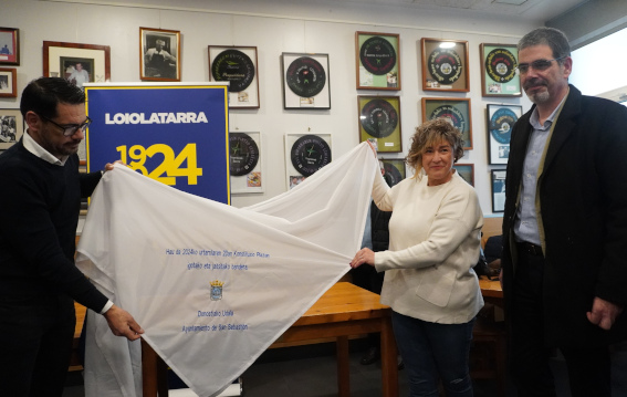 Loiolatarra KE elkarteak 100 urte beteko ditu 2024an, eta Udalak erabaki du urteurren hori ospatzeko urtarrilaren 20ko 00:00etan Konstituzio plazan igo eta egun horretako 24:00ak arte hagan egon zen bandera ematea. Emandako entseina honako testu honekin brodatu da: «Hau da 2024ko urtarrilaren 20an Konstituzio plazan igotako eta jaitsitako bandera«.