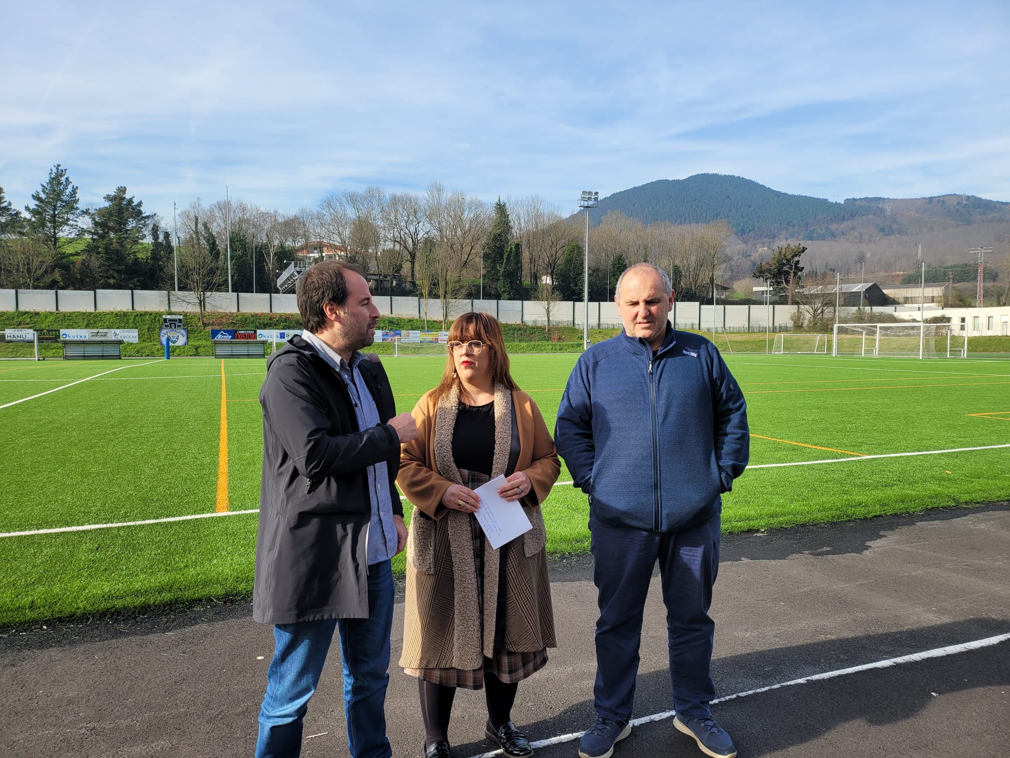 Álvarez ha estado acompañada por el alcalde de Andoain, Andoni Álvarez, y el presidente del club de fútbol Euskalduna, Jimmy Brosa en una rueda de prensa que se ha desarrollado en el campo de fútbol renovado por la empresa Limonta Sports Ibérica, con un coste de 251.890,25 (IVA incluido) para el cambio del césped y la eliminación del foso de atletismo para aumentar el campo, así como la creación de un campo de fútbol 5 y una zona de entreno para porteros en la medialuna cercana a la ikastola Aita Larramendi.