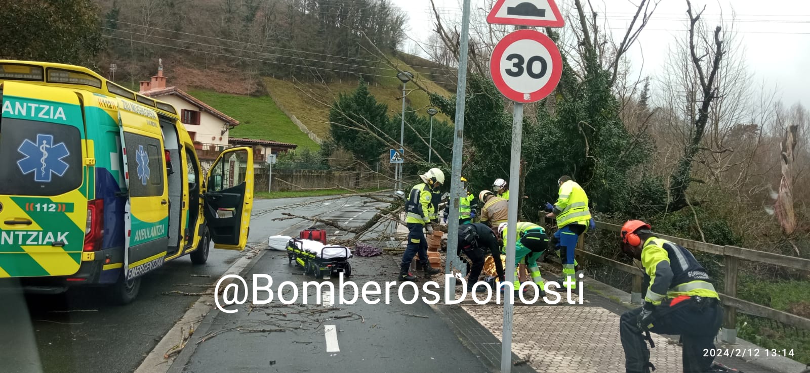 Los hechos ocurrieron pasadas las doce y media del mediodía. SOS Deiak 112 recibió el aviso de que una persona había quedado atrapada por la caída de un árbol. Rápidamente los servicios de emergencias se desplazaron al lugar para socorrer al herido.