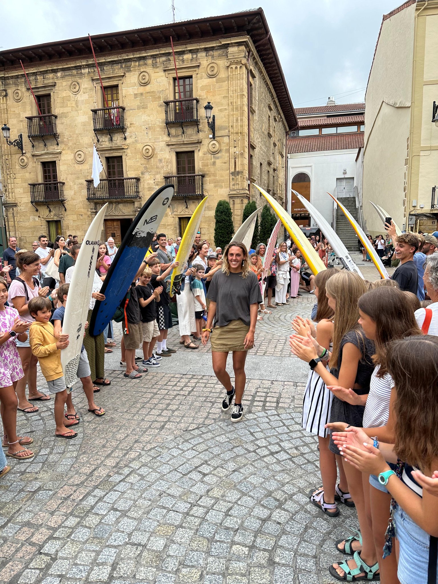La surfista Nadia Erastorbe fue recibida ayer en Zarautz, su municipio natal, para celebrar el buen papel realizado en los Juegos Olímpicos de París 2024.