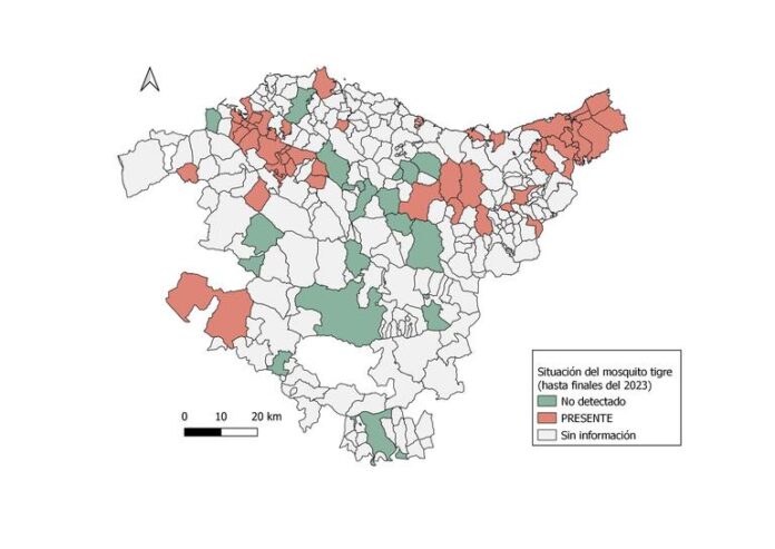 El programa de vigilancia puesto en marcha en Euskadi en 2013 ha permitido detectar la presencia del mosquito tigre en 56 municipios. El Departamento de Salud, junto con NEIKER y varios ayuntamientos, colabora en el control de esta especie invasora a través de un muestreo basado en la colocación de trampas en zonas urbanas y periurbanas que atraen a las hembras de mosquitos donde depositan sus huevos.