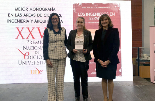 Zientzia, Ingeniaritza eta Arkitekturako monografiarik onenaren saria jaso du Euskal Herriko Unibertsitateko Argitalpen Zerbitzuak argitaratutako ‘Los ingenieros en España. El nacimiento de una elite’ lanak. Zerbitzuko zuzendariak, Elisabete Alberdik, jaso du saria Huelvako Unibertsitateko errektorearen (Maria Antonia Peña) eta UNEko lehendakariaren (Maria Isabel Cabrera) eskutik.