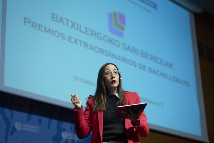 Begoña Pedrosa Hezkuntza sailburuak 2023-2024ko Batxilergoko Sari Bereziak emateko ekitaldian hartu du, Eusko Jaurlaritzak Lakuan duen egoitzan. Saritutako 16 pertsonak beren goi-mailako ikasketen lehen urtea egiten ari dira aurten, eta sailburuarengandik jaso dute egiaztapen-diploma. Aurretik, 1.235 euro gordineko saria jaso zuten.