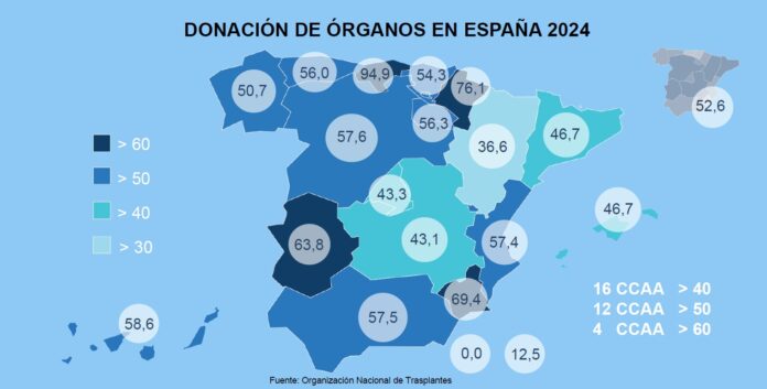 Nafarroa, Espainiako bigarren komunitatea, milioi biztanleko organo-emaileen tasa handiena duena 2024an