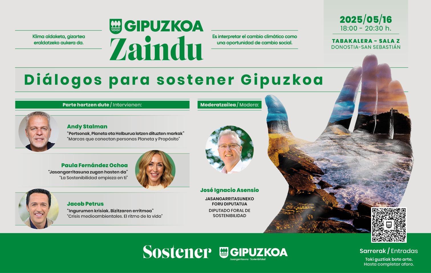 En el evento Gipuzkoa Zaindu “Dialogos para sostener Gipuzkoa” se llevarán a cabo interesantes diálogos para sostener Gipuzkoa en una experiencia única en la Sala Z de Tabakalera, en Donostia, este viernes 16 de mayo de 18:00 a 20:30 horas.