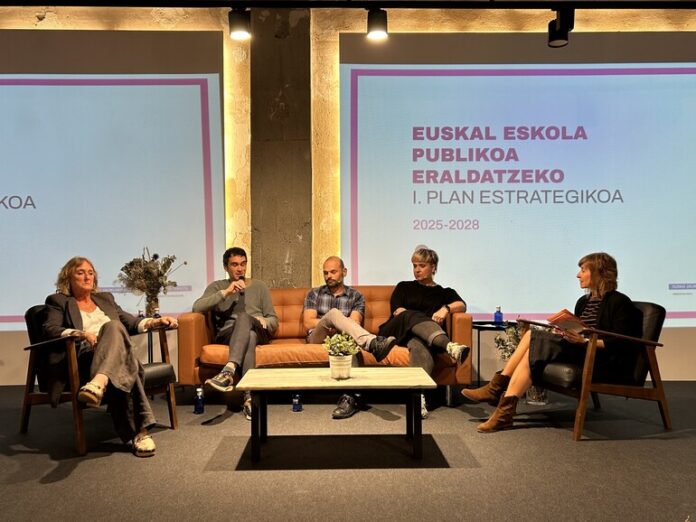 Eusko Jaurlaritzako Hezkuntza Sailak gaur arratsaldean aurkeztu du, Bilbon egindako ekitaldi batean, 2025-2028 aldirako Euskal Eskola Publikoa Eraldatzeko I. Plan Estrategikoaren inplementazioaren hasiera. Topaketak ikastetxe publikoetako zuzendaritza-taldeetako ordezkariak bildu ditu, baita prozesu ireki eta plural baten esparruan, plana egiten aktiboki parte hartu zuten hezkuntza-komunitateko hainbat lagun ere.