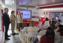 La consejera Carmen Maeztu visita la oficina móvil de orientación laborañ.