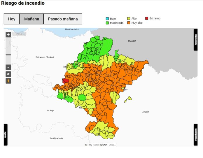Nafarroako Gobernuak, Barneko Zuzendaritza Nagusiaren bitartez, gogorarazi du kontu handiz ibili behar dela eta datozen egunetan baso-suteak sor ditzakeen jarduerak saihestu behar direla. Estatuko Meteorologia Agentziak (AEMET) argitaratutako iragarpenen arabera, bihar, asteazkena, eta ostegunean arrisku handia dago Foru Komunitateko lurralde gehienetan.