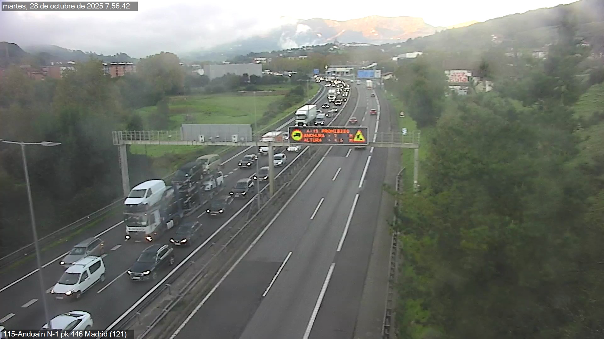 Una avería en un camión ha causado esta mañana importantes retenciones en la N-1 a su paso por Andoain, en dirección Irun. El vehículo pesado ha quedado inmovilizado en el kilómetro 447, lo que ha obligado a cerrar temporalmente uno de los carriles, reduciendo notablemente la fluidez del tráfico.