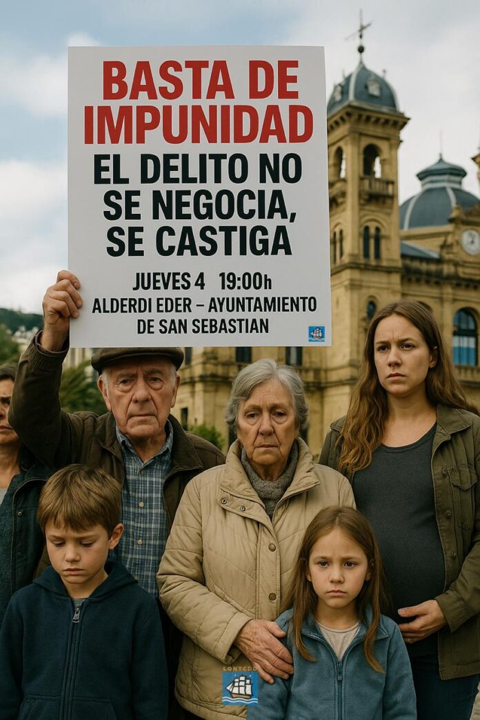 La organización hace un llamamiento a la ciudadanía para que participe en la movilización y exige “medidas efectivas” que refuercen la seguridad en la ciudad. La protesta busca abrir un debate público sobre la gestión municipal en materia de convivencia y poner sobre la mesa la necesidad de políticas que garanticen “tolerancia cero” ante los delitos que afectan al día a día de los donostiarras.