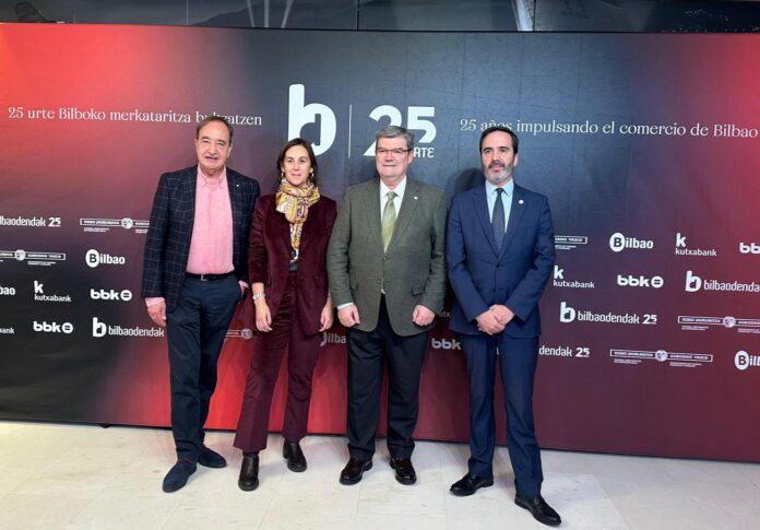 Eusko Jaurlaritzako Turismo, Merkataritza eta Kontsumoko sailburu Javier Hurtadok BilbaoDendak elkartearen 25. urteurrena ospatu du gaur arratsaldean, Bilbon. Bilboko alkate Juan Mari Aburtorekin eta BilbaoDendak presidente Rafael Gardeazabalekin batera.