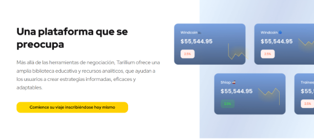 Otra fortaleza destacada en esta Reseña de Tarillium.com es la estructura multiactivo de la plataforma. Tarillium no limita a los usuarios a un solo mercado. Ofrece acceso a pares de forex, acciones, materias primas, índices y criptomonedas, todo dentro de un mismo entorno digital.