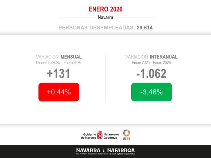 Nafarroak enplegua sortzen jarraitzen du, iazko urtarrilean baino 6.087 afiliazio gehiago eta 1.062 langabe  gutxiago izan baitira. Afiliazioa hilean -%0,77 jaitsi bada ere, azken urtean enplegua hazi egin da 6.087 afiliaziorekin (+%1,98). Ohikoa da jaitsiera nabarmena izatea urteko lehen hilabetean. Kasu honetan, batez besteko afiliazioari dagokionean, abenduarekin alderatuta, 2.446 pertsona gutxiago izan dira (-%0,77). Hala ere, jaitsiera hori urtarrilean serie osoan erregistratutako txikiena da, eta enplegu-mailak historikoki altuak diren balioetan egoten jarraitzen du. Batez besteko afiliazioa 313.295 pertsonakoa da.